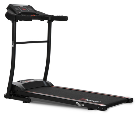 Bieżnia została wyposażona w komputer z ekranem, który pozwoli Ci na kontrolowanie parametrów podczas biegu. Wyświetla dystans, czas, prędkość, tętno, spalone kalorie.